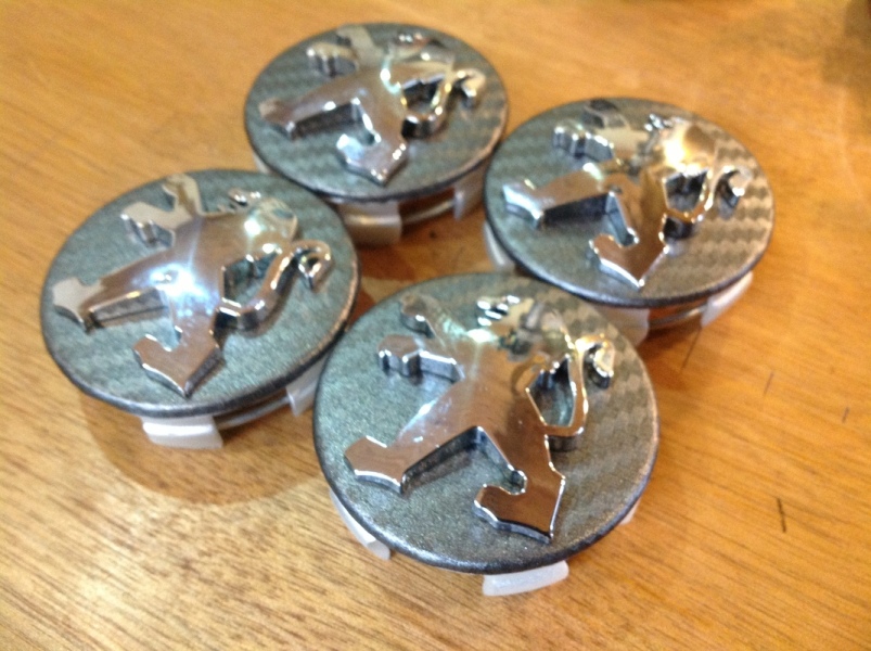 4 X CACHES MOYEU CENTRE DE ROUE PEUGEOT 60MM CARBONE NOIR NEUF "LE MUST" MODELE EXCLUSIF !!!